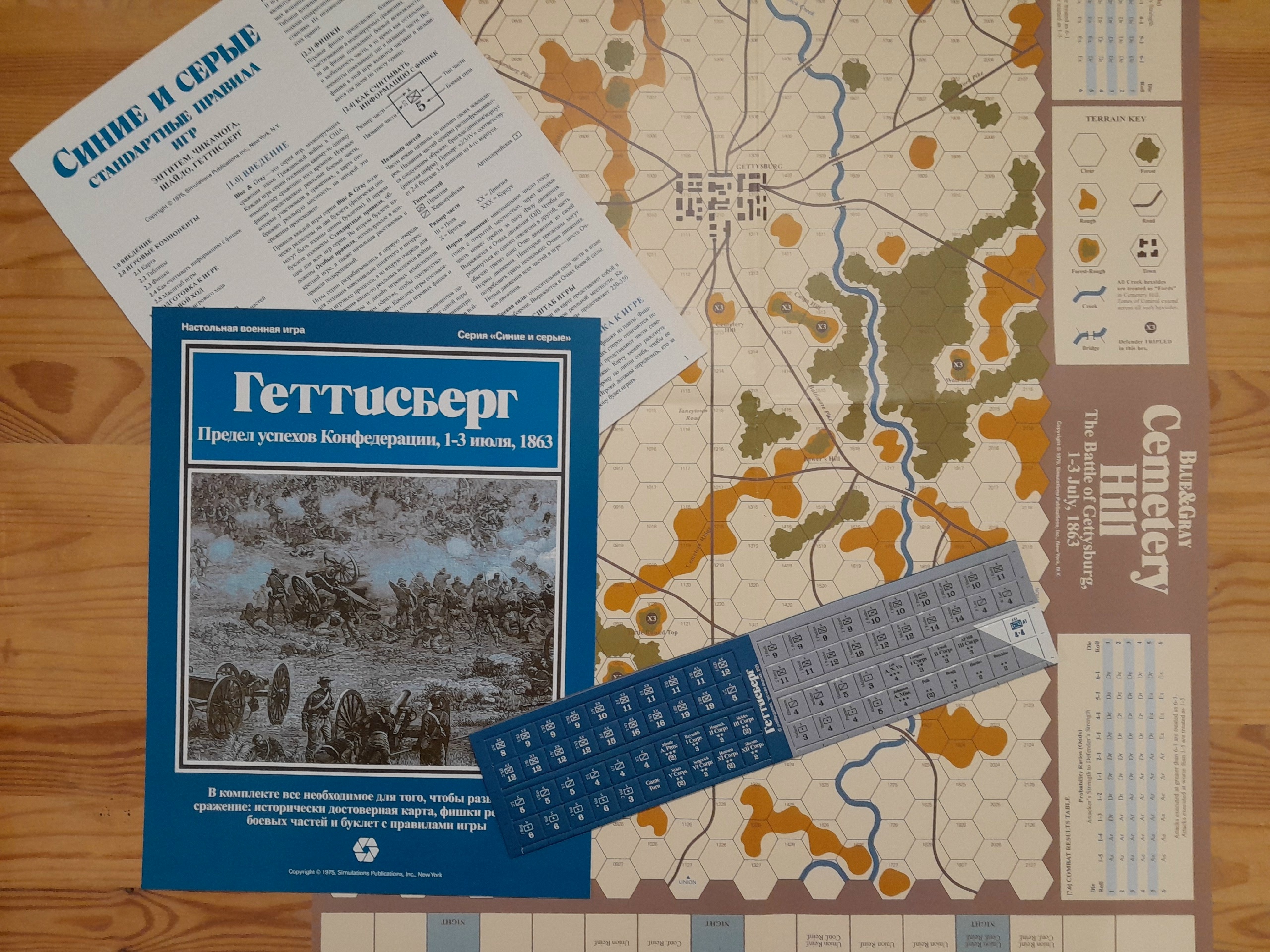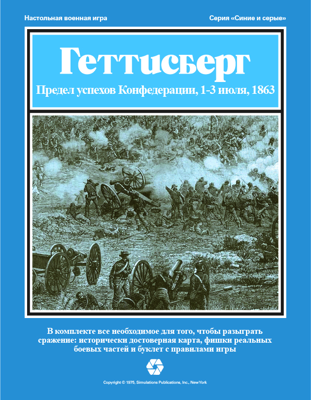 Военная игра серии “Синие и серые”, посвященная самому знаменитому сражению Гражданской войны в США. Сражение при Геттисберге стало "высшей точкой прилива" военных усилий Конфедерации, после поражения в котором южане так и не смогли вернуть себе инициативу. Исполненное драматизма трехдневное сражение прекрасно отображено в рамках нестареющей серии.